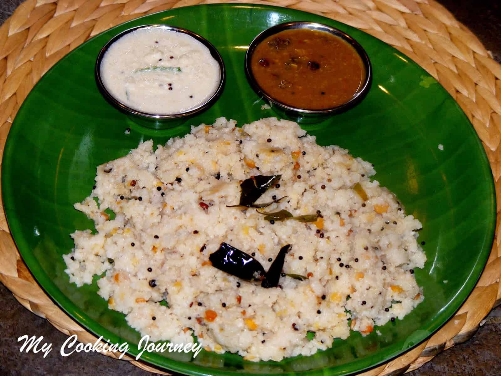 - The Arisi Uppuma should be ready in about 15 minutes. Check if the rice is cooked well and then turn off the flame. Keep the pan covered for 10 more minutes before serving. Serve the Rice Uppuma with chutney or sambhar!